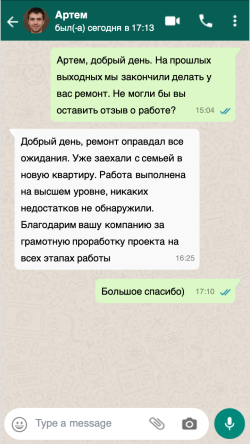 Фирма занимается ремонтом офисов, коттеджей, квартир, дач. Выполним различные виды ремонтных работ в помещении. Многие заказчики, которые обращались в нашу фирму, оставили положительные отзывы, они размещены на сайте. У нас представлены фотографии интерьеров для ознакомления клиентов. Мастера выполнили больше 1000 заказов качественно и в срок.