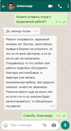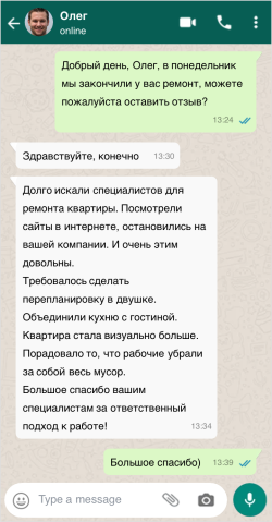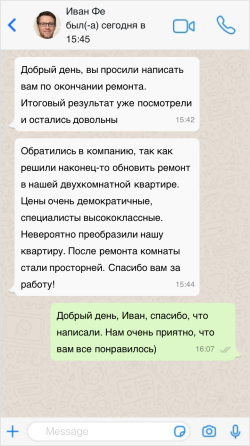 После заключения договора приступаем к ремонту. Продолжительность капитального ремонта составляет 20 дней, а косметического 5. Срок работы зависит от площади помещения и его особенностей.